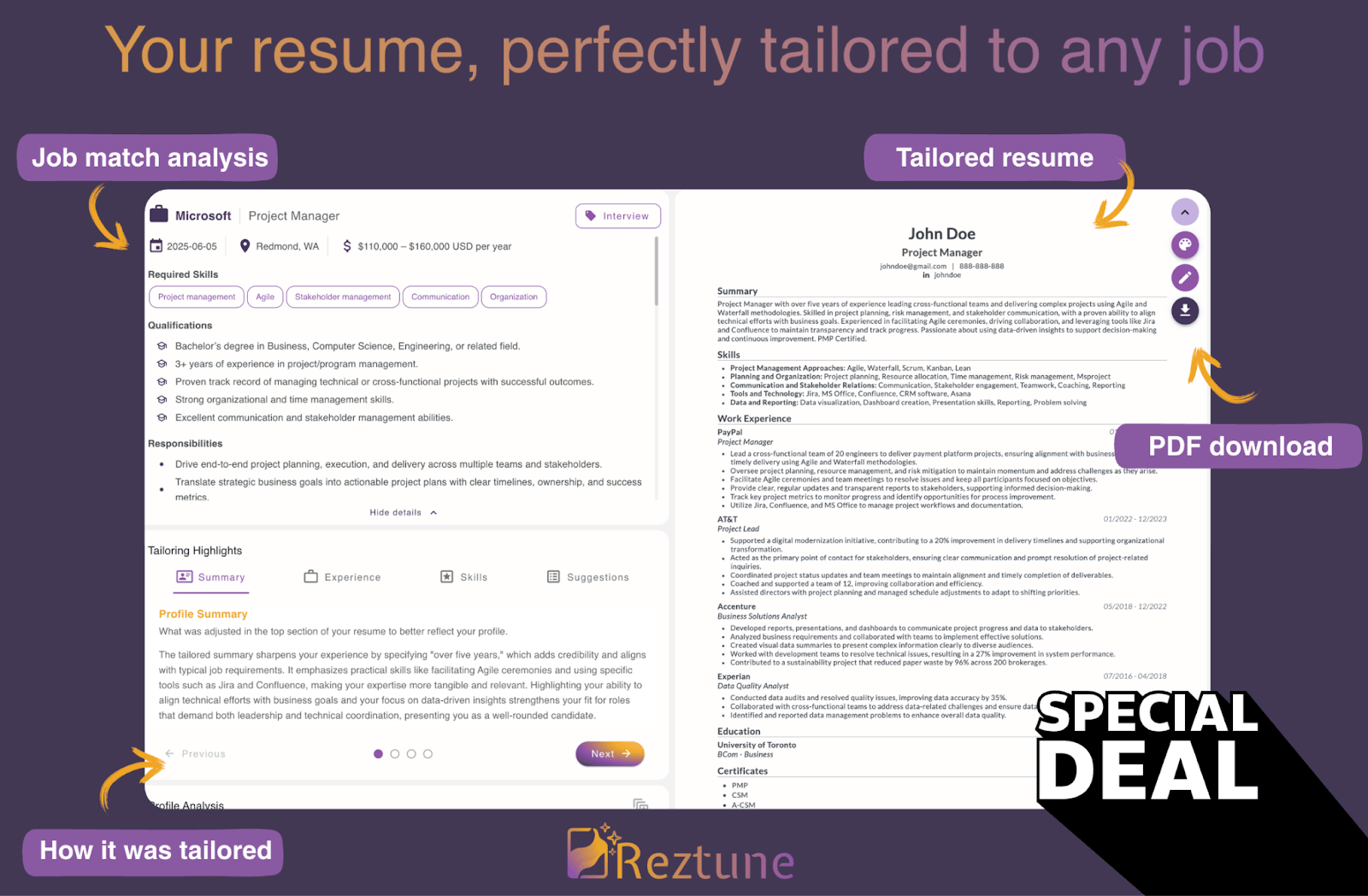 Reztune gives you both and helps you track all your job applications in one place. Just upload your resume once, paste any job description, and get a professionally tailored, formatted resume in seconds