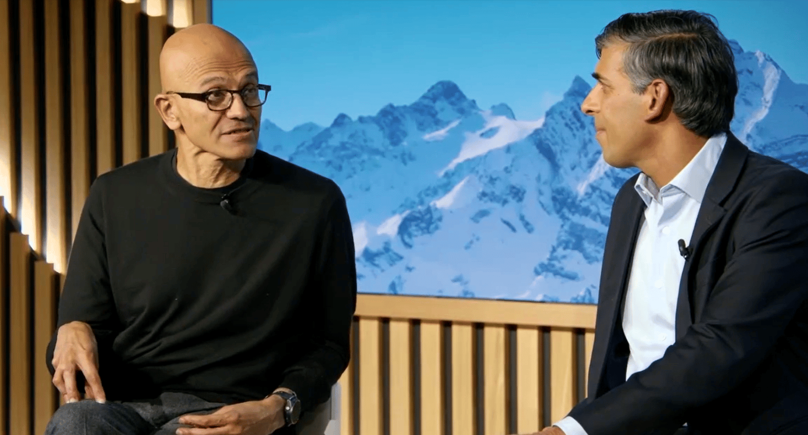 Microsoft CEO Satya Nadella introduced a new metaphor for AI at Davos, telling BlackRock CEO Larry Fink that workers are becoming "managers of infinite minds." He said AI acts as "infinite minds" beside every knowledge worker.