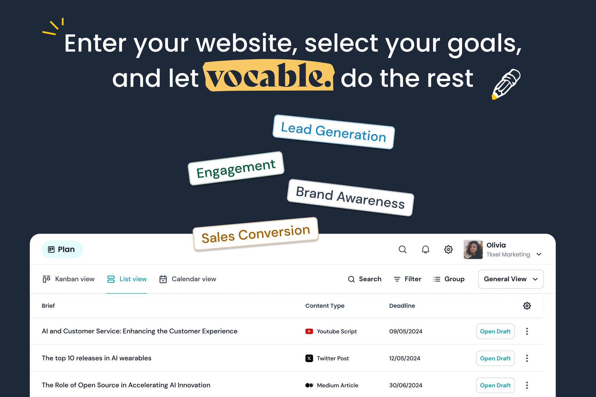 If your marketing relies on âweâll post when we have time,â your competitors just got there first. Vocable.ai is the AI content system that turns ideas into publication-ready posts across LinkedIn, X, Instagram, blogs, newsletters, and YouTube â in minutes.
